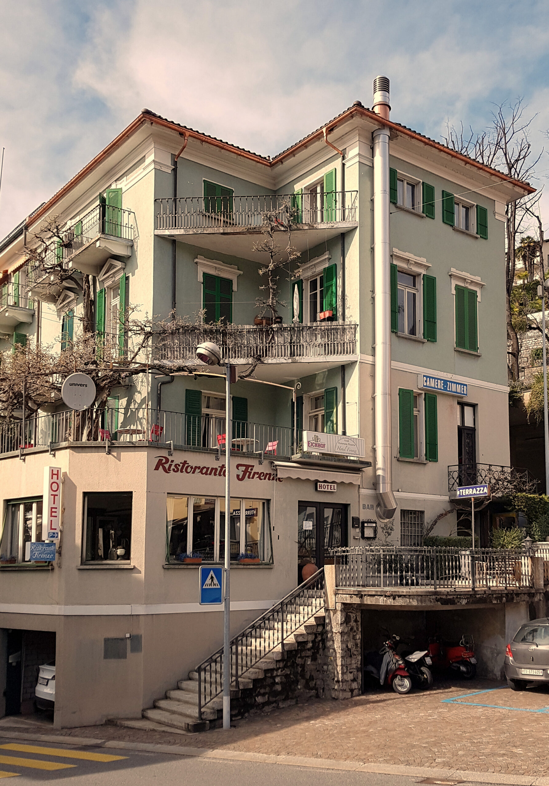 Lo stabile è composto da tre appartamenti, di cui un attico, un albergo con sei camere e un ristorante con terrazza.